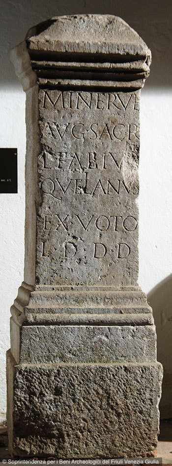 - Minervae / Aug(ustae) sacr(um) / L(ucius) Fabiu[s] / Quelianus / ex voto / l(ocus) d(atus) d(ecreto) d(ecurionum)
