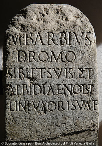 - M(arcus) Barbius / Dromo / sibi et suis et / Albidiae Nobi/lini uxori suae