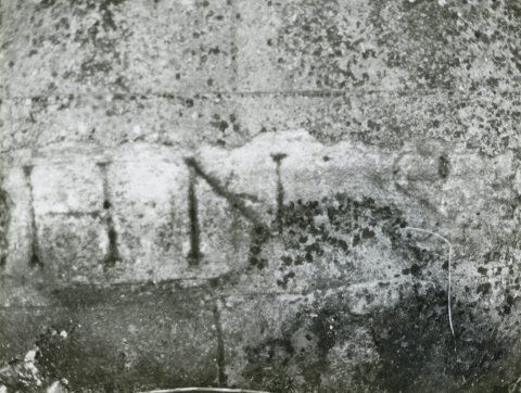 - Unterbergmühle, in der Mitte der Nordseite der Tenne eingemauert, unter Verputz