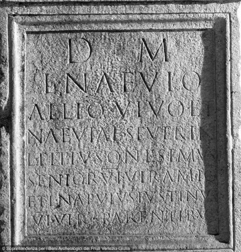 - D(is) M(anibus) / L(ucio) Naevio / Allio vivo et / Naeviae Severin(ae) / L(ucius) Titius Onesimus / senior VIvir amic(o) / et L(ucius) Naevius Iustinus / VIvir parentibus