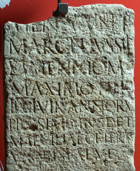 - M(arcus) Ennius P(ubli) f(ilius) / Marcellus sib[i] / et M(arco) Ennio M(arci) [f(ilio)] / Maximo filio / IIIIIIvir(o) annor(um) XX[-] / piissimo in se et / Maeciliae C(ai) f(iliae) Terti[ae] / uxori suae v(ivus) f(ecit)
