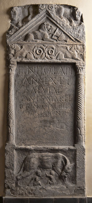 - Finito Lappi (filio) / an(norum) LX et / Salviae / Iantumari f(iliae) / con(iugi) opt(imae) fil(ii) / fecerunt