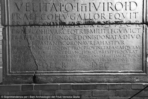 - CIL 05, 00875; AE 1891, 00091; AE 1893, 00125; AE 1995, +00571; InscrAqu-01, 00495 a,b u. 00715; Lettich, Itinerari Epigrafici Aquileiesi 2003 Nr. 62; G. Alföldy, Römische Statuen in Venetia et Histria. Epigraphische Quellen (Heidelberg 1984) 98 Nr. 87