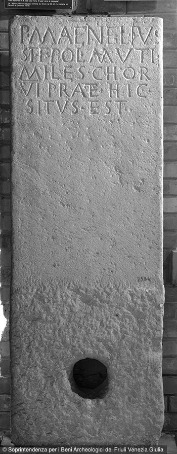 - P(ublius) Maenelius / St(ati) f(ilius) Pol(lia) Muti(na) / miles c(o)hor(tis) / VI praet(oriae) hic / situs est
