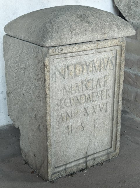 - Nedymus / Maeciae / Secundae ser(vus) / an(norum) XXVI / h(ic) s(itus) e(st)