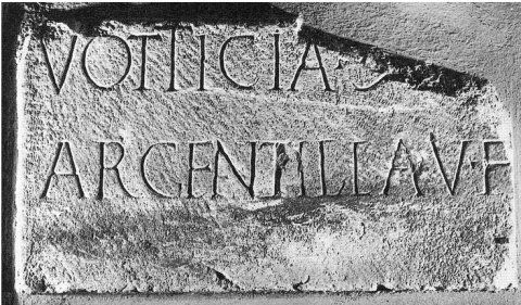 - Votticia (mulieris) l(iberta) / Argentilla v(iva) f(ecit)