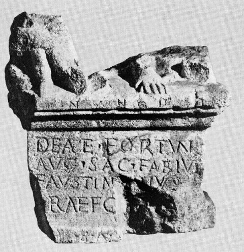 - [I]n h(onorem) d(omus) d(ivinae) / deae Fortun(ae) / Aug(ustae) sac(rum) Fabius / Faustian[ia]nus / [p]raef(ectus) c[oh(ortis) III Brit(annorum)] / [v(otum)] s(olvit) a(nimo) [l(ibens)?]