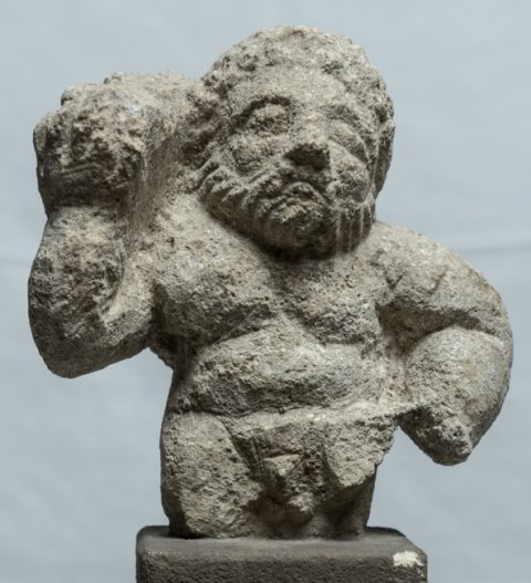 - Mythische Figur (Hercules ?) : nackter bärtiger Mann trägt auf der rechten Schulter ein Tier.