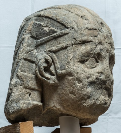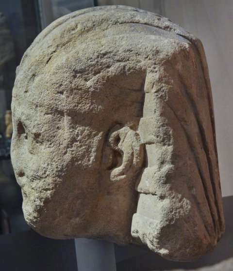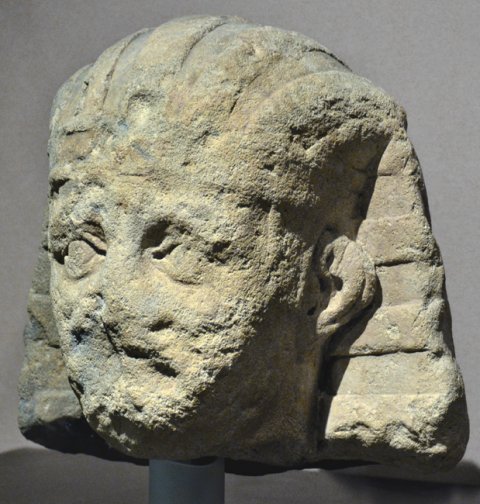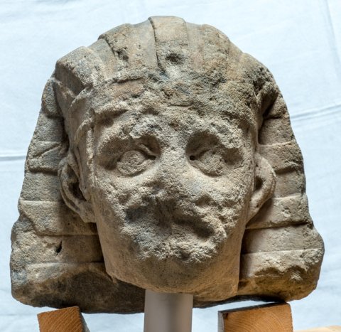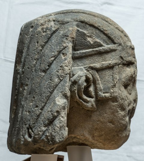 - Historische Person (Kaiser ?) : Männlicher bartloser Kopf mit ägyptischem, horizontal gestreiftem Kopftuch.