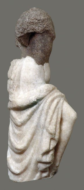 - Mythische Figur : stehende Victoria, nackt bis auf Mantel um Hüften und Beine, an der rechten Schulter Rest eines Flügels.