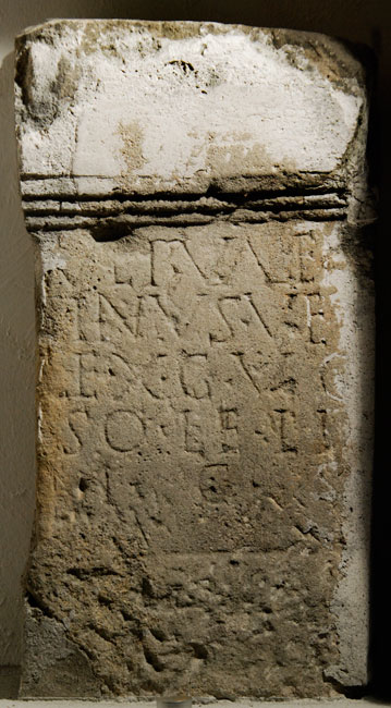 - [I(ovi) O(ptimo) M(aximo)] ? // Ulp(ius) Valen/tinus vete(ranus) / le(gionis) X G(eminae) vo(tum) / so(lvit) l(a)e(tus) li(bens) / m(erito) <c=G>um s(uis)