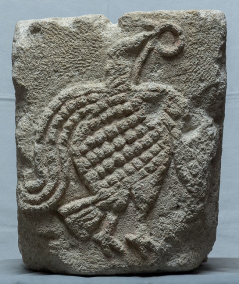 - Schlusstein eines Bogens (?) mit stehendem Adler, der einen Kranz im Schnabel hält.