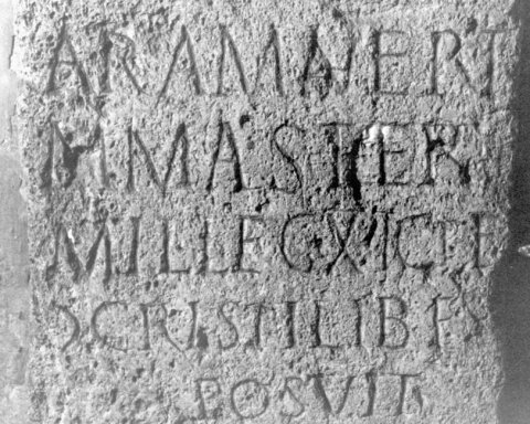 - Aram Avert(entibus) / M(arcus) Master(na) / mil(es) leg(ionis) XI C(laudiae) P(iae) F(idelis) / |(centuria) Crispi libe(n)s / posuit