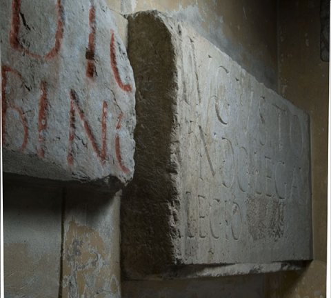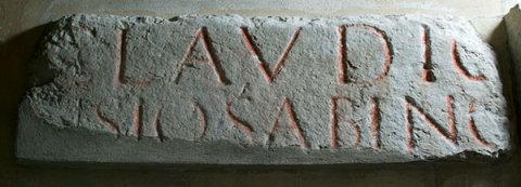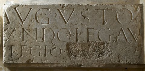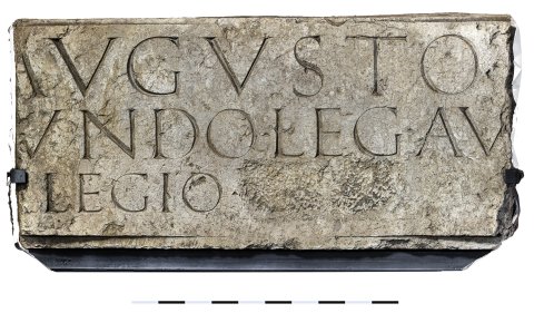 - Ti(berio) Claudio [Caesare] Augusto [Germ(anico)] / [P(ublio) Calv]isio Sabino [Pomponio Se]cundo leg(ato) Au[g(usti) pr(o) pr(aetore)] / legio [[XXI]]