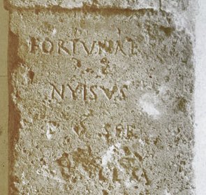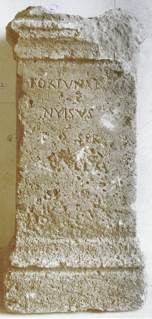 - Fortunae / Nyisus / P(ubli) ser(vus) / [v(otum) s(olvit)] l(ibens) l(aetus) m(erito)