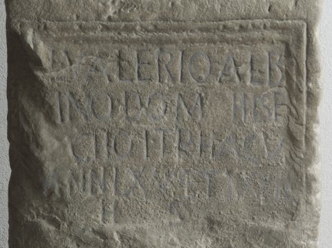 - L(ucio) Valerio Alb/ino dom[[o]] Hisp(ania) / |(centurioni) c(o)ho(rtis) I Trhacu[m](!) / ann(orum) LXV sti(pendiorum) XXIII / h(ic) s(itus) e(st)