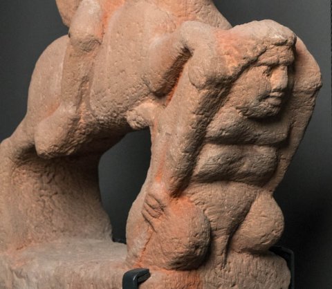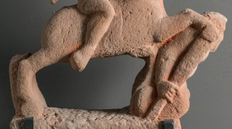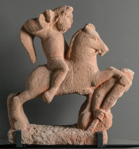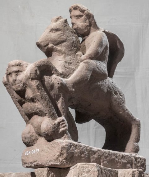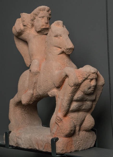 - Mythische Figuren : über einen knienden Giganten hinwegreitender Jupiter.