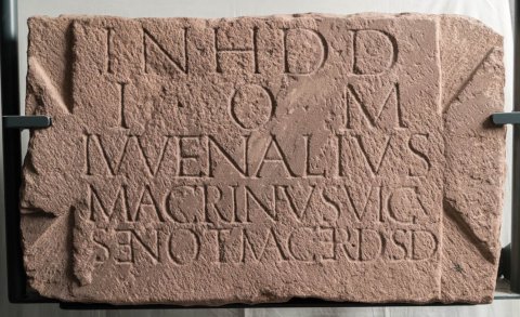 - In h(onorem) d(omus) d(ivinae) / I(ovi) o(ptimo) m(aximo) / Iuvenalius / Macrinus vica(nis) / Senot(ensibus) macer(iam) d(e) s(uo) d(edit)