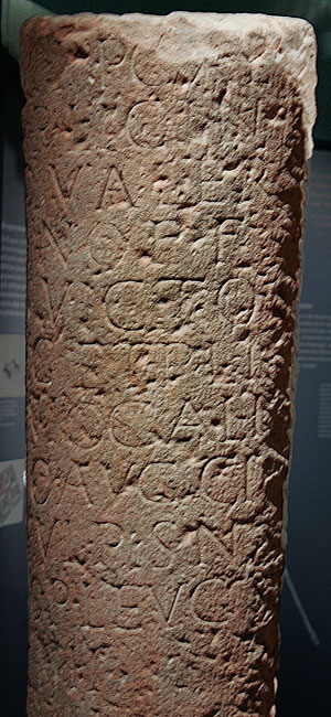 - Impp(eratoribus) Cae/ss(aribus) P(ublio) Licin/io Valer/iano P(io) F(elici) / Invicto / Aug(usto) et P(ublio) Li/cinio Gal(l)i/eno Aug(usto) ci/vit(as) Ulp(ia) S(ueborum) N(icrensium) / a Lop(oduno) leug(as) / IIII