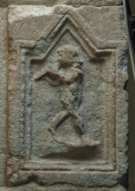 1381 Fragment einer Grabinschrift mit Satyrrelief