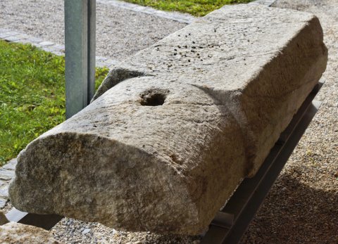 - Halbrunder Balken, Oberseite im vorderen Teil abgeflacht.