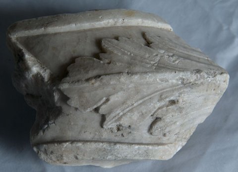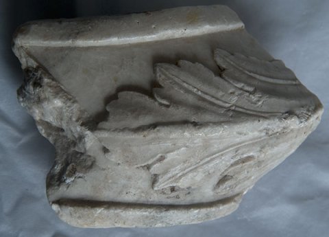 - Zwischen zwei glatten Leisten Akanthusblatt, in der Mitte aufgewölbt. Außerhalb der Leisten Ansatz von leicht einwärts geschwungenen Flächen.