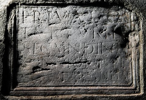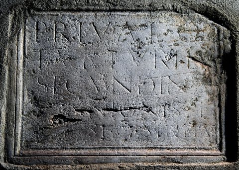 - Privato / Turturi e[t] / Secundin(a)e Fannionis Pl/[---]us f(ilius) vi(vus) sibi et par(entibus)
