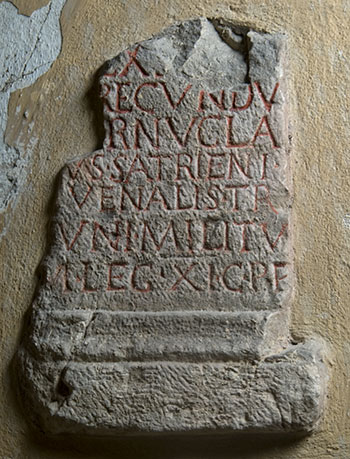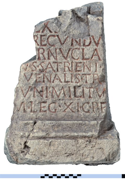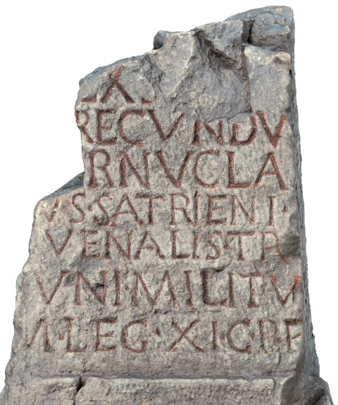 - ---]las?[---] / [Ve]recundu[s] / [c]ornucla/[ri]us Satrieni / [Iu]venalis tr/[ib]uni militu/m leg(ionis) XI C(laudiae) P(iae) F(idelis)