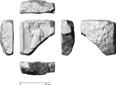 - Rückseite u. rechte unt. Ecke abgebr., verwittert