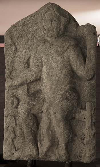 - Mythische Figur: Ganzfigur des thronenden Jupiter, nackt bis auf Mantel über linker Schulter und linker Hüfte, linker Arm erhoben, Thron mit gedrechselten Beinen.