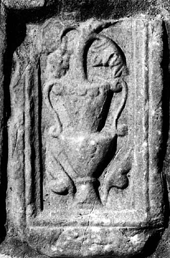 - Hochrechteckiges Feld mit Krater, aus dem Weinstock wächst.