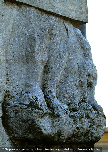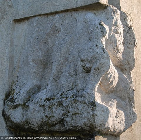 - oben abgebr., linke Seite eingemauert, stark bestoßen