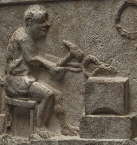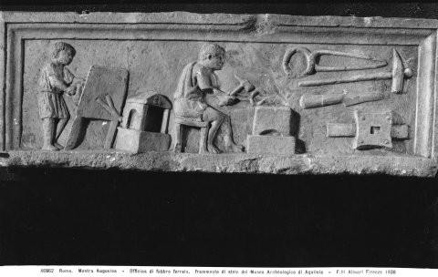 13942 Sockelrelief mit Schmiedewerkstatt