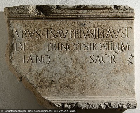 - Cl]arus T(itus) Saufeius T(iti) l(ibertus) Faust(us) / [---]idi Princeps Hostili M(arci?) / [---] Iano sacr(averunt)