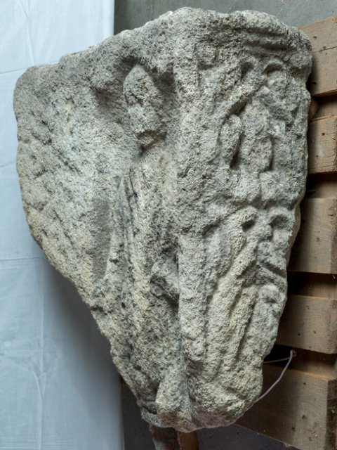 - zersägt und wieder zus.gesetzt, unten abgebr., in der Oberseite Dübelloch