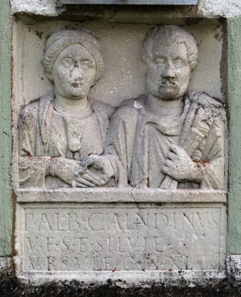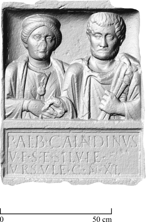 - P(ublius) Alb(ius) Calandinus / v(ivus) f(ecit) s(ibi) et Silvi(a)e / Ursul(a)e c(oniugi) an(norum) XL