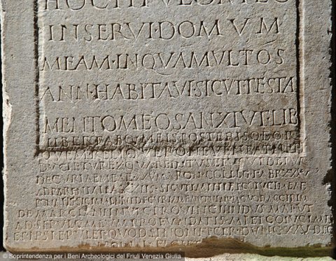 - InscrAqu-03, 02873; Zaccaria, Antichità altoadriatiche 29, 1987, 133; Lettich, Itinerari Epigrafici Aquileiesi 2003 Nr. 280