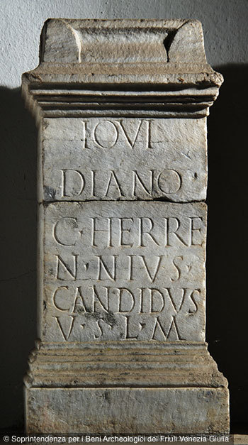 - Iovi / Diano / C(aius) Herre/nnius / Candidus / v(otum) s(olvit) l(ibens) m(erito)