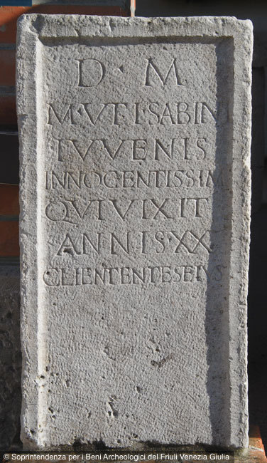 - D(is) M(anibus) / M(arci) Uti Sabini / iuvenis / innocentissim(i) / qui vixit / annis XX / cliententes(!) eius