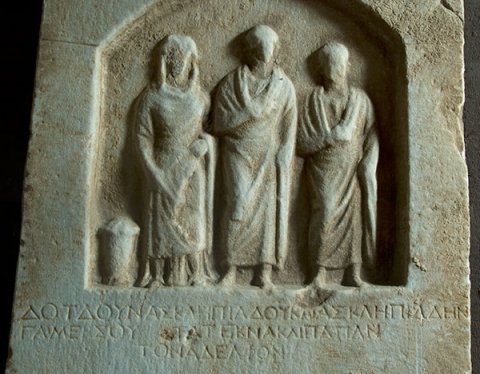 - griechisch: ὁ δῆμος // Δοτδουν Ἀσκληπιάδου καὶ Ἀσκληπιάδην / Γαμερσου vv τὰ τέκνα καὶ Παπαν / τὸν ἀδελφόν