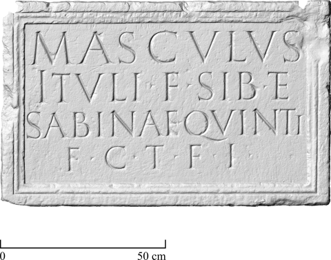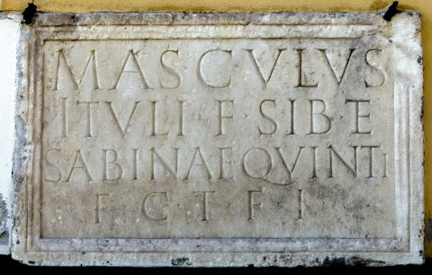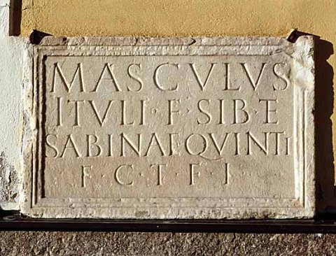 - Masculus / Ituli f(ilius) sib(i) et / Sabinae Quinti / f(iliae) c(oniugi) t(estamento) f(ieri) i(ussit)