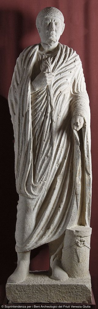 - Grabstatue eines Togatus, neben dem linken Bein Rollenbehälter