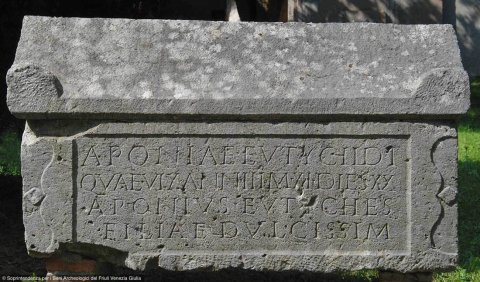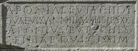 - Aponiae Eutychidi / quae vix(it) ann(os) III m(enses) XI dies XX / Aponius Eutyches / filiae dulcissim(ae)