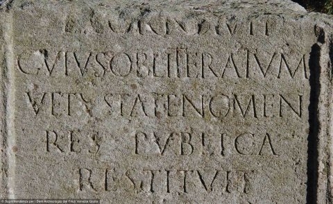 - ---] / exornavit / cuius obliteratum / vetustate nomen / res publica / restituit