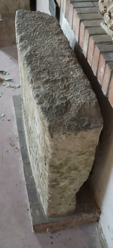 - Vorderseite nach außen gewölbt, in der Inschrift sekundäre Aushöhlungen