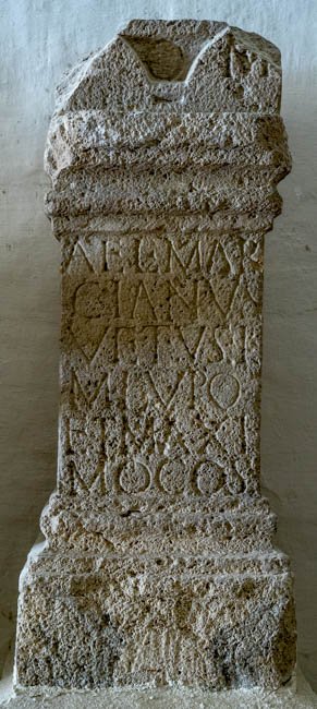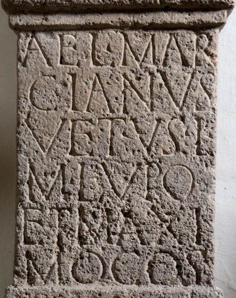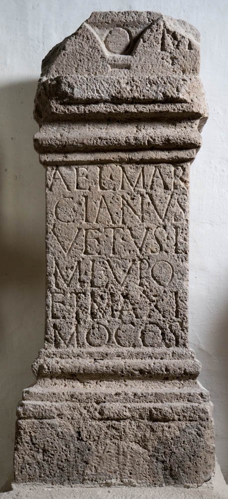 - I(ovi) o(ptimo) m(aximo) / Ael(ius) Mar/cianus / vet(eranus) v(otum) s(olvit) l(ibens) / m(erito) Lupo / et Maxi/mo co(n)s(ulibus)