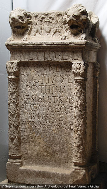 - L(ucio) Alfio L(uci) l(iberto) / Iucundo / Plotia |(mulieris) l(iberta) / Pothina / v(iva) f(ecit) sibi et suis / Plotiae Q(uinti) f(iliae) / Primae / patronae suae