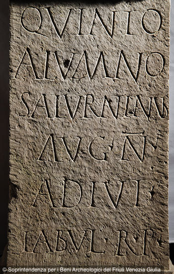 - D(is) M(anibus) / Quinto / alumno / Saturninus / Aug(usti) n(ostri) / adiut(or) / tabul(ariorum) / r(ationis) p(atrimonii)