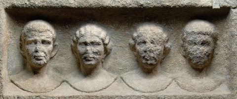 - Familie: In einfach gerahmter Rechtecknische Büsten von zwei Frauen und zwei Männern.