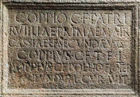 - C(aio) Oppio C(ai) f(ilio) patri / Rutiliae Primae matri / Cassiae L(uci) f(iliae) Secundae uxsori(!) / C(aius) Oppius C(ai) f(ilius) t(estamento) f(ieri) i(ussit) / P(ublius) Oppius C(ai) f(ilius) Pollio frater / faciundum curavit